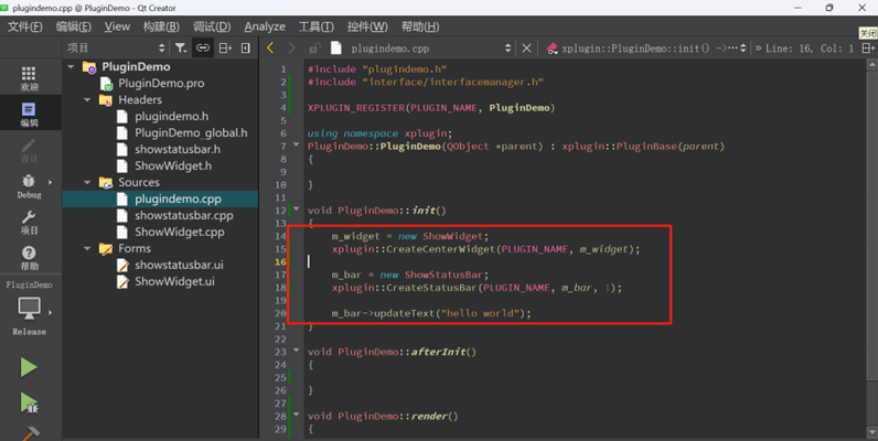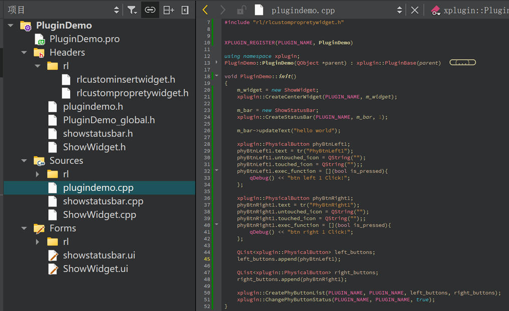 Step5: In the created < plugindemo.h >, inherit the public base class < PluginBase >. Implement the data initialization function in it. This operation requires including the base class library file < plugincommon.h>. Put PluginDemo in the Plugin namespace xplugin.