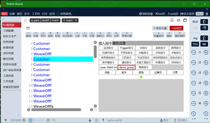 Users can customize programming commands and insert them into the auxiliary programming of the RL editing interface.
